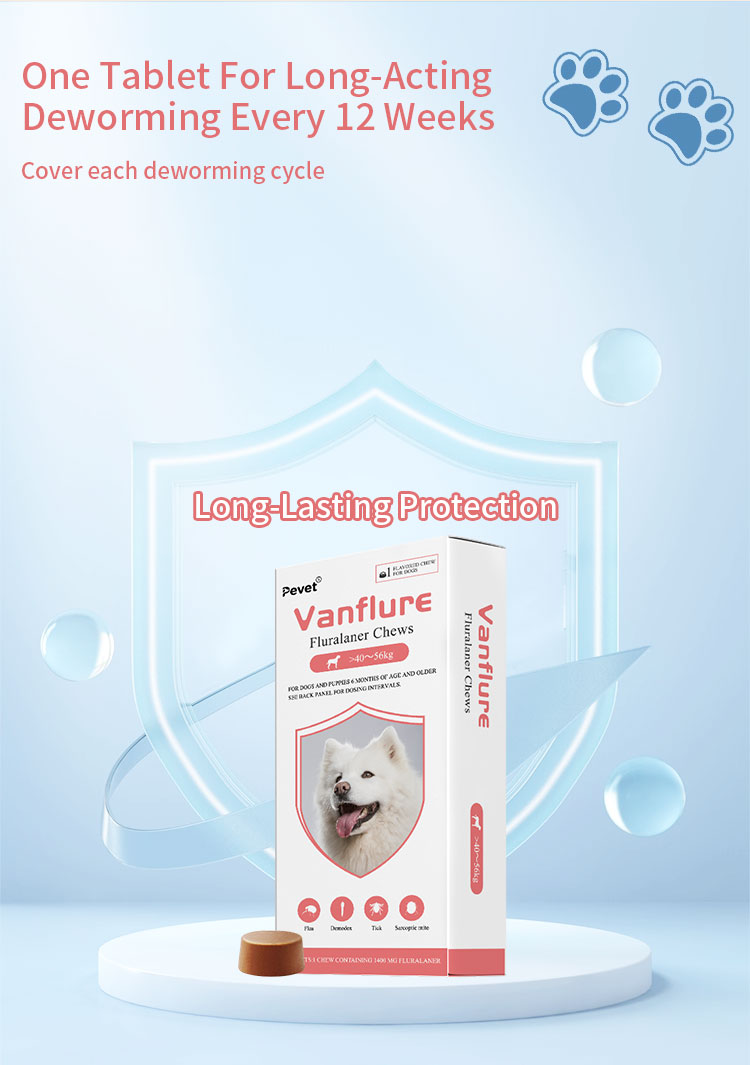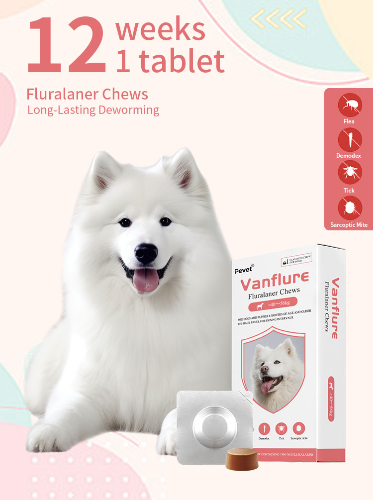 【التأثيرات الدوائية】الديناميكية الدوائية: فلوريا مبيد حشري وقراد من فئة إيزوكسازولين. يعمل عن طريق تثبيط مستقبلات حمض غاما-أمينوبيوتيريك ومستقبلات الغلوتامات التي تتحكم في قنوات أيونات الكلوريد، مما يمنع أيونات الكلوريد من اختراق الغشاء بعد المشبكي والتداخل مع نقل الإشارات عبر الغشاء في الجهاز العصبي، مسببًا اضطرابًا في الجهاز العصبي للحشرة وموتها لاحقًا. لا يُظهر فلوريا مقاومة متقاطعة مع الديلدرين. فلوريا دواء جهازي مضاد للطفيليات. يستمر مفعوله في القضاء على البراغيث والقراد من جسم الكلب لمدة 12 أسبوعًا. فلوريا فعال في قتل قمل رأس القطط والكلاب. يبدأ مفعوله سريعًا على البراغيث البالغة وله مدة تأثير طويلة. كما أنه يمنع إنتاج بيض البراغيث، وبالتالي يعطل دورة حياة البراغيث. يُعدّ دواء فلوريا فعالاً في قتل أنواع مختلفة من القراد، بما في ذلك القراد الرخو (اليرقات، الحوريات، والبالغات)، والقراد الصلب سداسي الشكل، والقراد الصلب ذو الطرف الكتفي، والقراد الصلب الدائري الكامل، والقراد الشبكي، والقراد المتغير، وقراد الرأس الأحمر الدموي. يتميز فلوريا بسهولة امتصاصه عند تناوله عن طريق الفم، حيث يصل إلى أعلى تركيز له في الدم خلال يوم واحد. ويمكن للطعام أن يُعزز امتصاصه. يتوزع فلوريا في الجسم، مع أعلى تركيز له في الدهون، يليها الكبد، ثم الكلى، وأخيراً العضلات. لا يخضع فلوريا لعملية أيض تُذكر في الكلاب. يبلغ نصف عمر التخلص منه من البلازما حوالي 12 يوماً، مما يسمح له بالحفاظ على تركيز فعال في الدم خلال فترة تناوله. يختلف كل من أعلى تركيز له في الدم ونصف عمر التخلص منه من البلازما بين الأفراد. يتم إخراج حوالي 90% من فلوريا في البراز بشكله الأصلي، بينما يتم إخراج كمية صغيرة منه عن طريق الكلى.