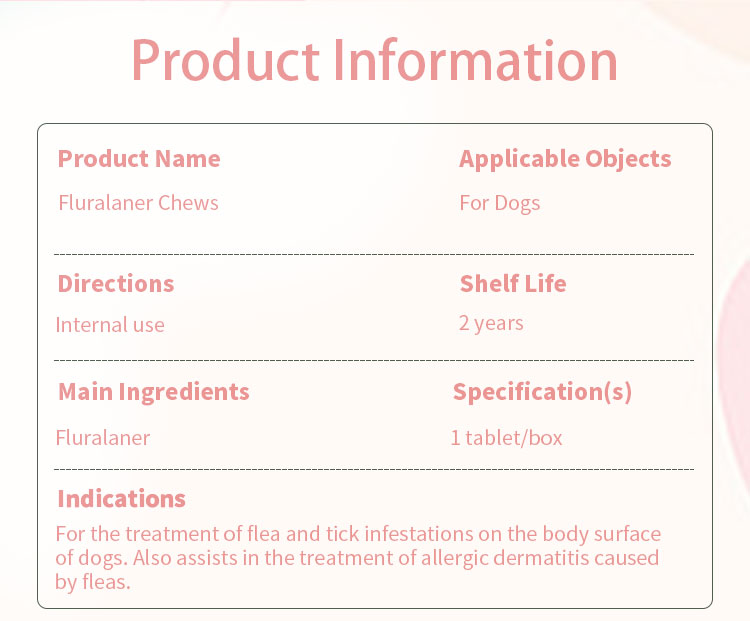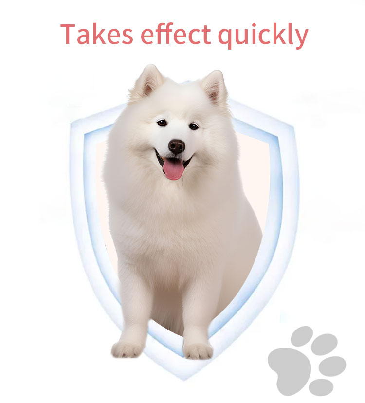 【دواعي الاستعمال】يستخدم لعلاج عدوى البراغيث والقراد على جسم الكلب، ويمكن أن يساعد أيضًا في علاج التهاب الجلد التحسسي الناجم عن البراغيث.
